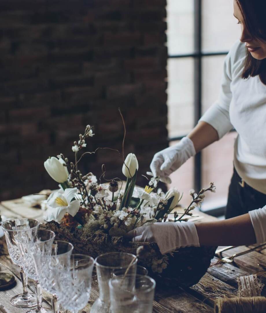 Typowo wariackie przygotowania miały miejsce dzień przed weselem ze świadkową Gosi. Samodzielnie robiłyśmy bukiety na stoły, po tym jak okazało się że kompozycja, którą wymyśliła Gosia jest zbyt skromna dla florystek i nie chcą one podjąć się realizacji. No więc zrobiłyśmy bukiety same - siedziałyśmy we trzy do 2 nad ranem.