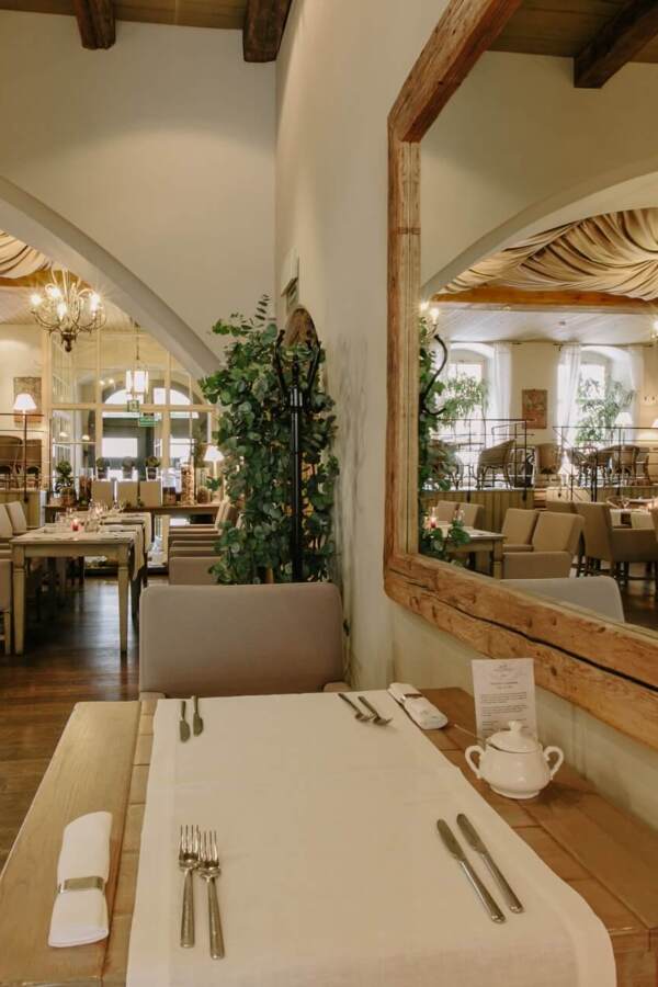 A marvellous venue for a wedding ceremony in the Stucco Hall with a banquet in the Fireplace Room. After the marriage, the Guest go to the lobby, where they give the Bride and Groom their best wishes and then proceed to the hall nearby for the banquet. An additional asset of this solution is a lobby leading to a terrace, which the Guests have access to throughout the banquet.