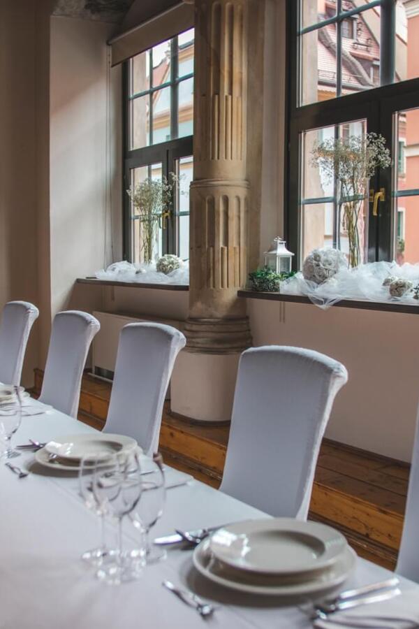 A spacious, air-conditioned hall for up to 49 persons. Ideal for a wedding ceremony outside the registry office. The corner replica of an antique fireplace and the sketches of Wrocław create a unique, remarkable ambience.