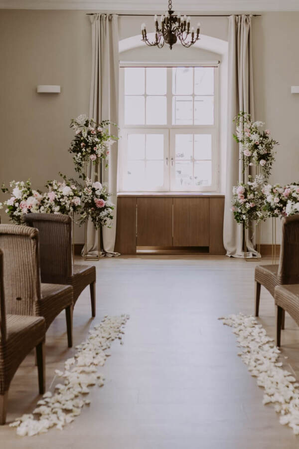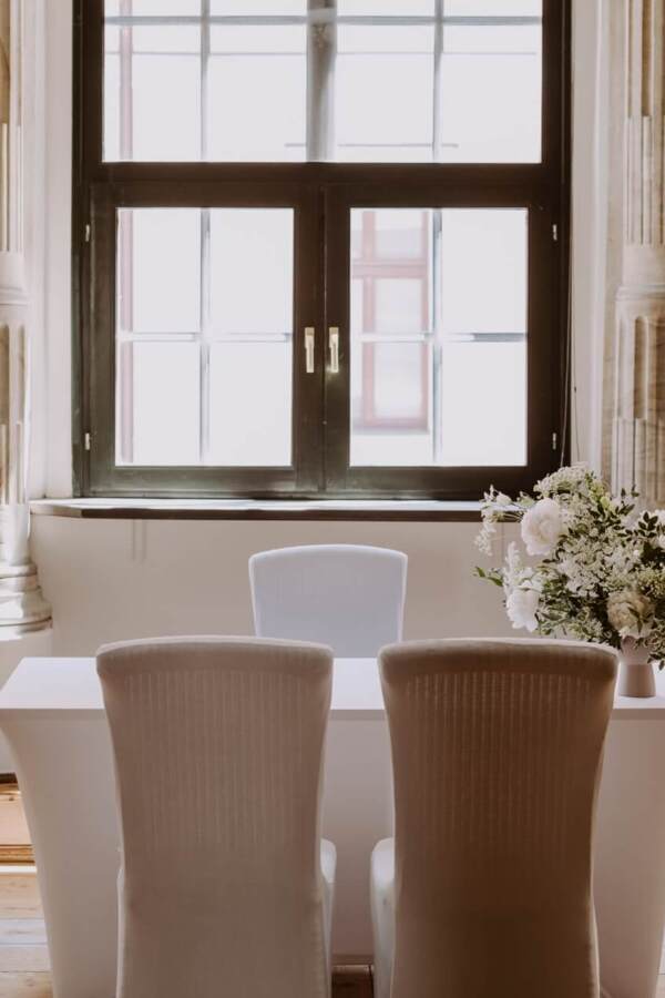 A very impressive hall with antique details – ideal for a wedding ceremony outside the registry office. The beautiful, restored stucco ceiling adds to the hall’s character. These elegant interiors make your Big Day a memorable one – it will stay in your fond memory forevermore.
